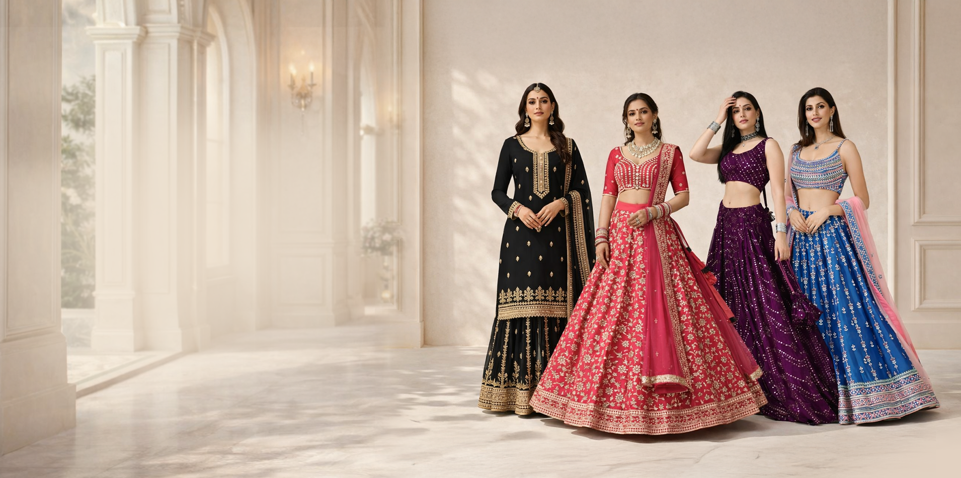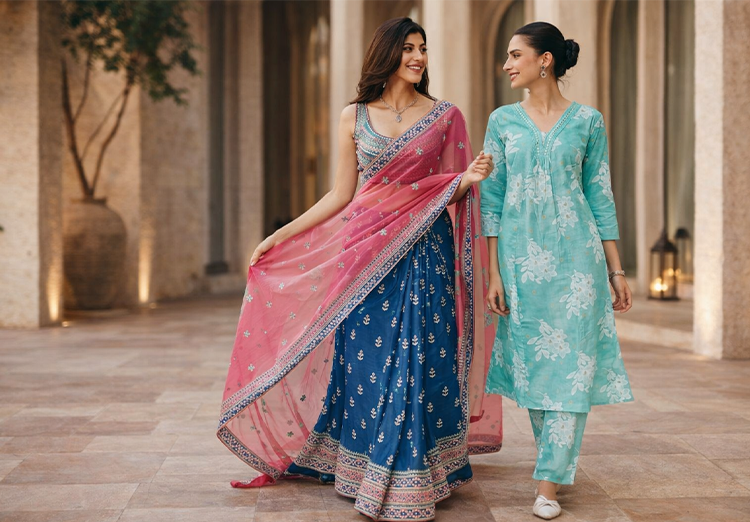 A complete ethnic wardrobe, curated—kurtis, suits, sarees, gowns, lehengas and sets, styled for every occasion.