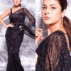 Classy an easy drape, this sequins piece of designer wear is a perfect outfit for social gatherings. Shaded in Black and composed with sequins embroidery all over, this saree holds magnificent grace in its drape.