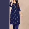 A perfect pick for upcoming festivals and social events. Check out this charming foil print rayon kurtis with kalis clad in vibrant bright colors which not only gives a stunning look but is also pocket friendly and hot choice of the season.