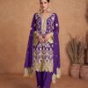 Floral Print Sequins Work Semi Stitched Chinon Silk Palazzo Suit 67201