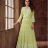 A perfect pick for weddings and parties, adorn yourself to this dazzling faux georget couture with blooming trendy colors and heavy embroidery furnishing it an additional touch. Coupled with dual santoon, dual bottom and heavy nazneen dupatta is a relevant preference and style status of modern women.