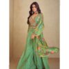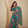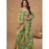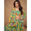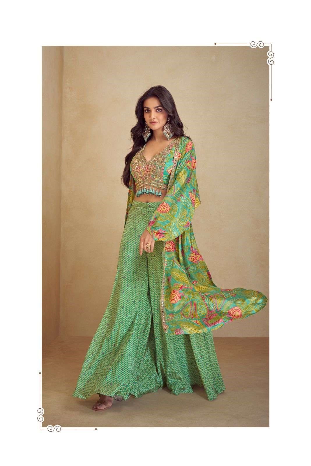 Indowestern Chinon Silk Free Size Crop Top, Palazzo & Shrug Sets 7505