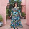 “Luxurious heavy cotton Anarkali Kurti with a captivating floral print and intricate embroidery.”