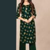 A perfect pick for upcoming festivals and social events. Check out this charming foil print rayon kurtis with kalis clad in vibrant bright colors which not only gives a stunning look but is also pocket friendly and hot choice of the season.