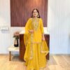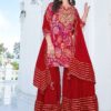 Check out this viscose floral digital print and handwork embroidery kurti with sharara & chiffon lace & tassel work dupatta well suited for upcoming wedding & ceremonial events.