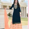 Marriages, cocktail parties, sangeet and receptions go hand in hand with Indian Wedding gowns. Grace yourself with this anarkali georget silhouette ensemble embedded with heavy embroidery and colorful glittering Swarovski stones when paired with high stilettos will evidently make you look stunning, keeping everyone mesmerized.