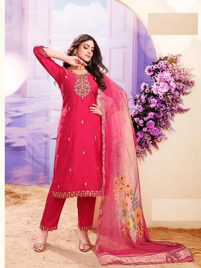 Introducing Elegance: Pink Roman Silk Suit with Digital Print Dupatta