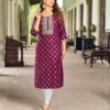 Check out this charming foil print rayon kurtis clad in vibrant bright & pastel colors which not only gives a stunning look but is also pocket friendly and hot choice of the season.