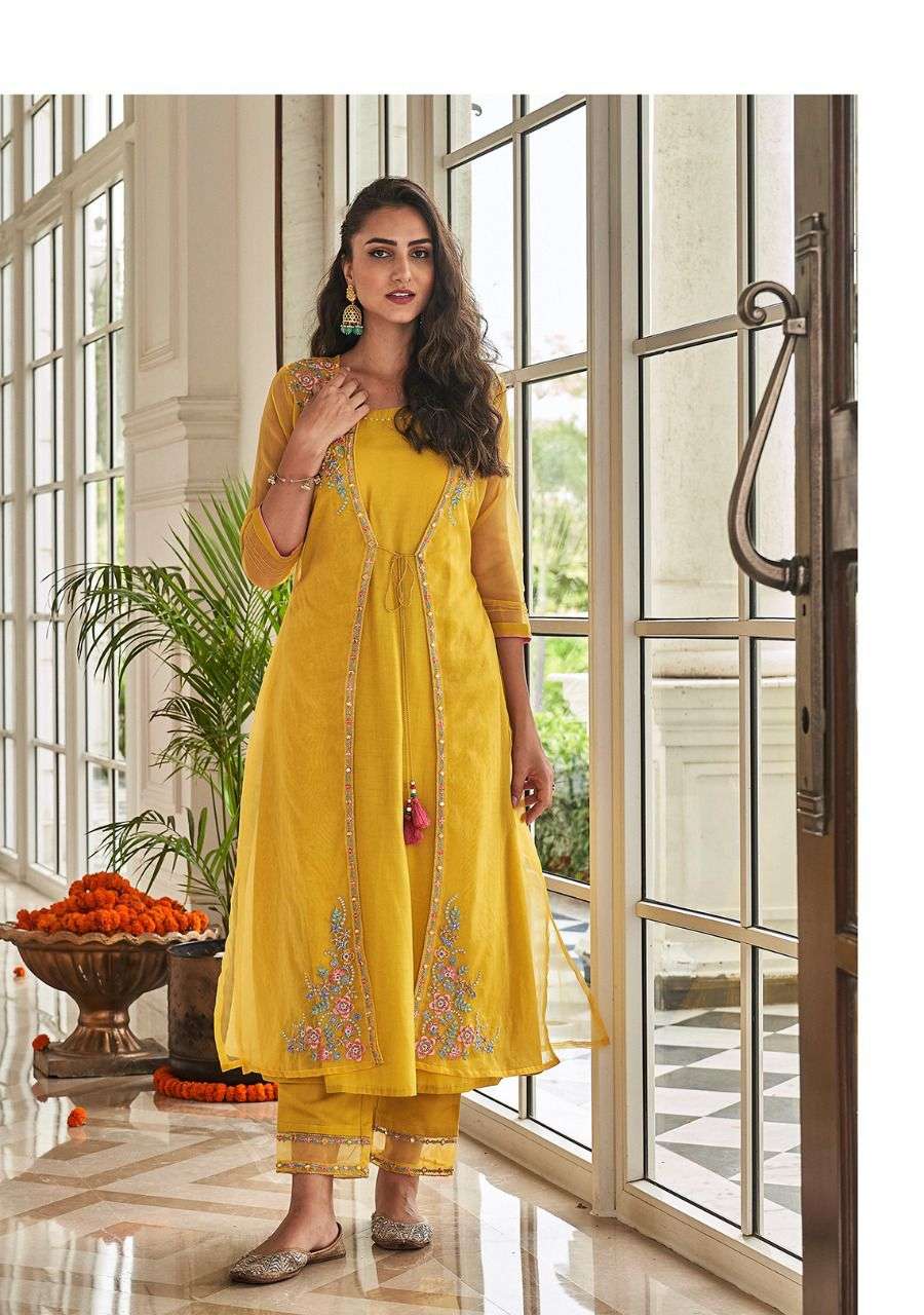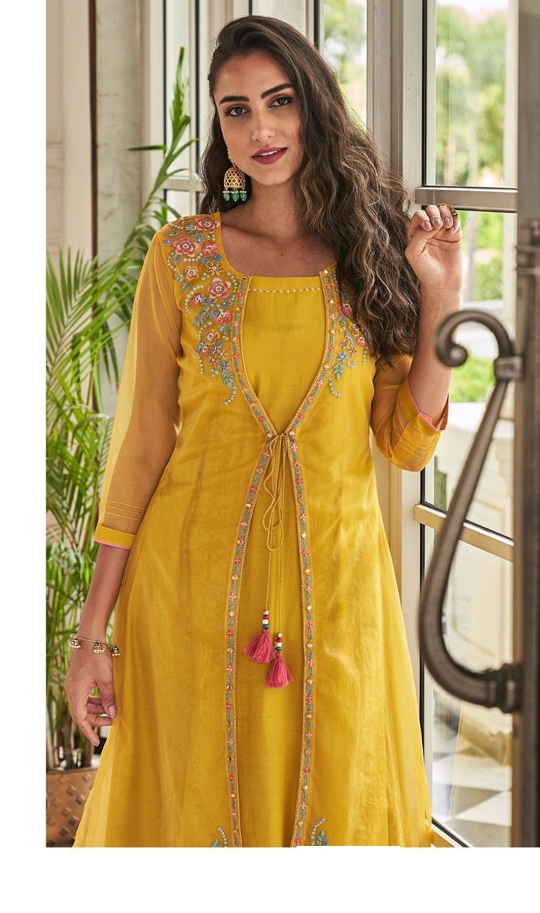 Beautiful Festive collection Designer Suits in silk fabric coupled with organza hand work koti and viscose silk pant.
