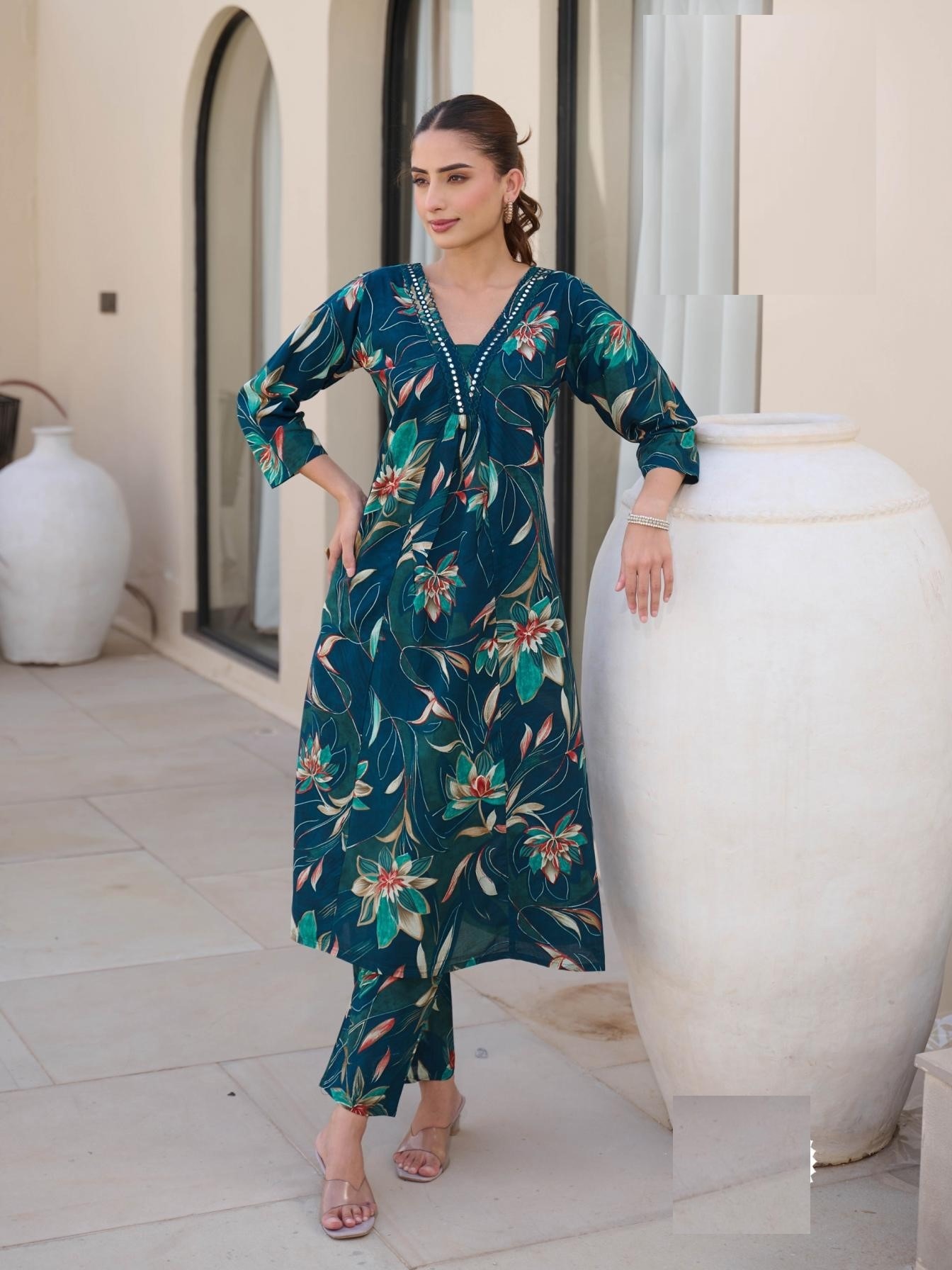 Teal Pure Cotton Kurta Sets For Summer 2004
