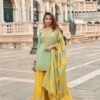 Lemon Green Chinon Silk Gharara Suit For Weddings 1655