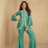 Wedding Indowestern Chinon Silk Crop Top, Gharara And Blazer Suits 10180